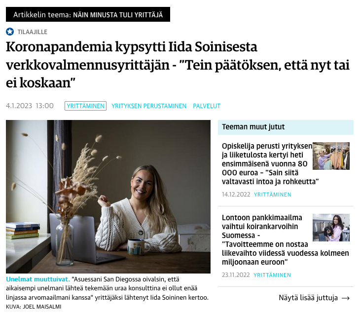 💫 Hän pääsi haastateltavaksi myös Kauppalehteen